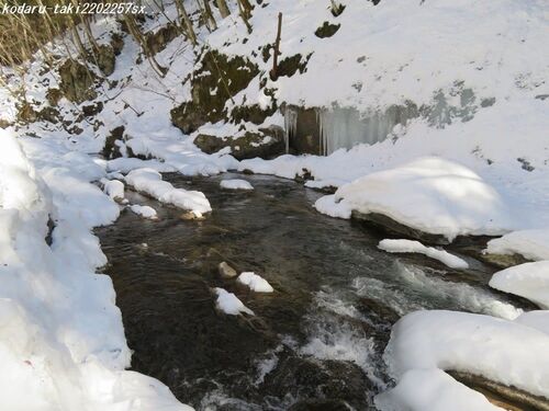 長野県王滝村「新滝」の 冬の氷瀑 (2022年01月26日) 毎冬 一回は見ておきたい氷瀑です 残念ながら数日前 ちょっと暖かい日があった そのときの雪解け水が被っていました ある日ある時・・・